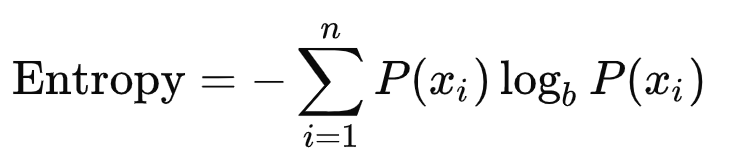 在上式中,P(x_i) 是随机事件 x_i 发生的概率。对数的底数 b 可以是任何大于 0 的实数;通常底数的值为 2、e(2.71)和 10。像「S」的花式符号是求和符号,即可以连续地将求和符号之外的函数相加,相加的次数取决于求和的下限和上限。在计算熵之后,我们可以通过利用信息增益开始构造决策树,从而判断哪种分裂方法能最大程度地减少熵。信息增益的公式如下: