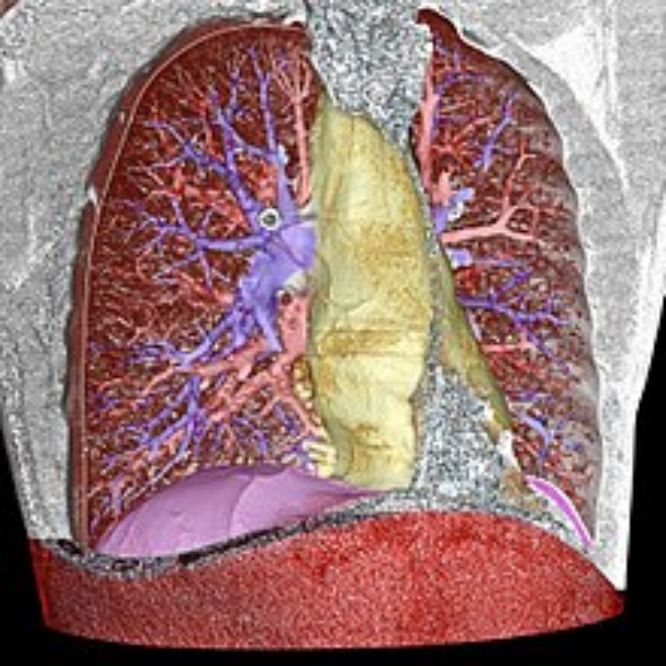 胸腔 3D 渲染 CT 扫描图像的体分割。(图源:https://en.wikipedia.org/wiki/Image_segmentation)