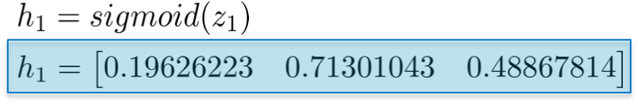 使用 Sigmoid 激活函数对加权和进行缩放,得到了第一个隐藏层 h_1 的值。请注意,原始的 2D 向量现在映射到了 3D 空间。