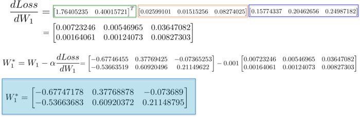 • 权重 W_1 是具有随机初始化数值的 2×3 的矩阵