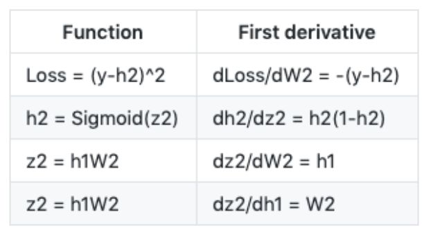 为了帮助记忆,下表列出了上面用到的一些函数定义以及它们的一阶导数:
