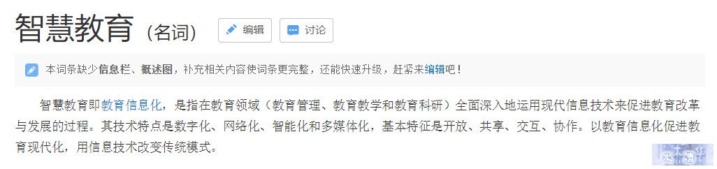 图1. 百度百科中对智慧教育的定义(2019)