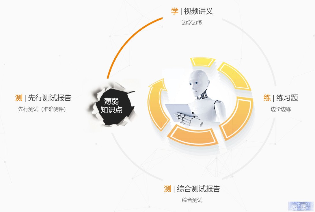 图2. 松鼠AI – “测 – 学 – 练 – 测”教学流程(官网,2019)