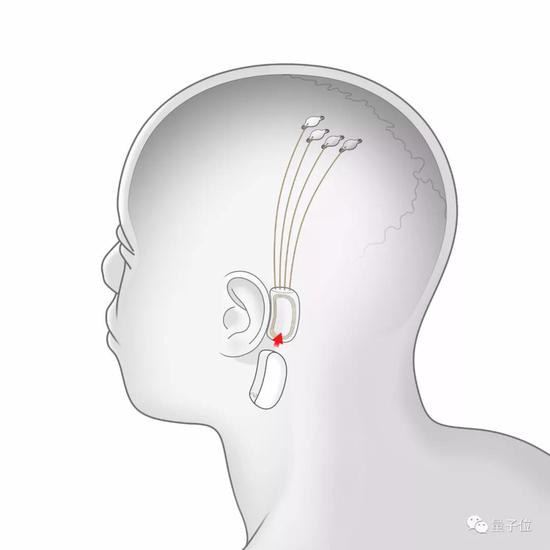 Neuralinky的计划中要植入四个传感器,其中三个位于运动区域,另一个位于感受区域。唯一外置的设备安装在耳后,内含一枚电池。