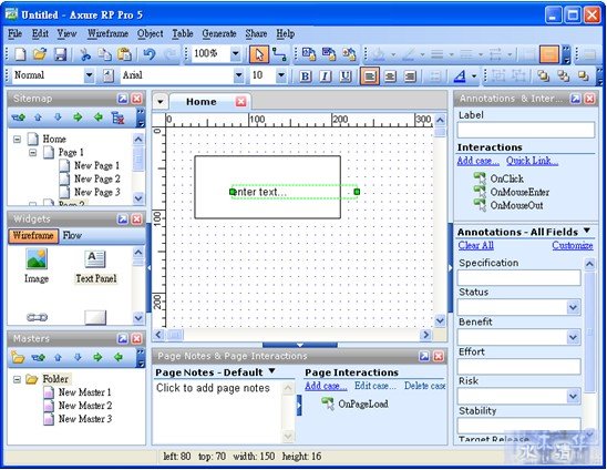 Axure RP 能帮助网站需求设计者,快捷而简便的创建基于网站构架图的带注释页面示意图、操作流程图、以及交互设计,并可自动生成用于演示的网页文件和规格文件,以提供演示与开发。
